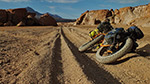 Der Nachmittag ist gelaufen. Zu viel Kraft hat das Schieben in der Salzpfanne gekostet. Die Piste ist auch nicht steinig, sonder eine Sandspur. Ich kann zwar fahren, aber schon nach wenigen Metern muss ich wieder anhalten, um Luft zu holen. Ich probiere zu schieben, aber ähnlich: ein paar Schritte, dann Pause zum atmen. Irgendwie schaffe ich auf diese Weise etwa 350 Höhenmeter, bis auf eine Höhe von 4000 Metern. Als ich dann eine wingeschütze Stelle finde, baue ich das Zelt auf und beschließe, dass es zur Höhenanpassung sowieso besser ist, nicht zu viel Höhenmeter auf einmal zu machen. Und morgens ist der Sand sowieso fester...