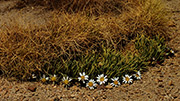 Ich sehe genau den Anstieg der Piste in der Ferne, und hier mache ich einen entscheidenden Fehler... Ich folge nicht den Geländewagenspuren, sondern halte direkt auf die in der ferne sichtbare Piste zu, quer über die Salzpfanne. Es ist eine Freude, wie das Fatbike über die dünne Salzschicht fährt. So macht es Spaß. Doch der Spaß ist dannn plötzlich vorbei: Der Untergrund hat sich verändert, die dünne, feste Salzschicht ist in eine lockere, weiche, aufgewölbte Schicht mit zahlreichen Polsterpflanzen übergegangen. Unfahrbar. Auch mit dem Fatbike nicht.