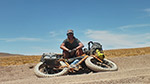 Ein paar Stunden später fahre ich dann im ersten Gang an dieser Steigung langsam bergauf. Die Piste führt wirklich wie mit dem Lineal gezogen gerade aus bergauf, nur wenig Anpassung an die Steigung, keine auch noch so weiten Serpentinen. Ich bin hin und her gerissen, ob ich mühsam fahren soll, oder mühsam schieben soll. Irgendwie bin ich leistungsmäßig halt immer noch nicht voll an die Höhen über 4400 Meter angepasst und tu' mir an langen Steigungen immer noch schwer... Ich wechsle also ab, ein paar 100 Meter schieben, dann wieder ein paar 100 Meter fahren.