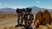 Es folgt schließlich eine recht lange Abfahrt in ein weites Tal. Hier erwarte ich das Dorf zu sehen, aber nichts. Ich bin schon etwas verzweifelt, schaue auf die Landkarte, kann aber keinen Navigationsfehler erkennen. Dann bemerke ich: Ich muss erst noch über einen weiteren kleinen Bergrücken, der als Ausläufer eines 5000er Vulkans noch die freie Fahrt in das Dorf verhindert…