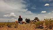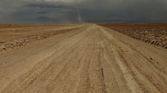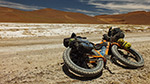 Schließlich, am Vormittag des nächsten Tages erreiche ich die gut gebaute Straße. Das erste größere Dorf ist Culpina, dann San Christobal. Die Straße ist eine mit Salzlehm beschichtete Piste, die sich teilweise wie auf Asphalt fahren lässt. Von nun an ist es nur noch ein Ausrollen: die 80 Kilometer von San Christobal bis Uyuni sind flach und nicht besonders abwechslungsreich. Etwa 40 Kilometer vor Uyuni zelte ich ein letztes Mal in der Wildnis, um am nächsten Vormittag erst in die Stadt einzufahren.