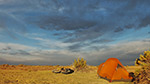Ich finde also tatsächlich einen Zeltplatz am Fluss, aber ohne Windschutz. Immerhin habe ich das Zelt (mit Überzelt) schon nach dem Wind ausgerichtet stehen, als wieder ein Sandsturm aufkommt, der diesmal genau über mein Zelt fegt. Nun weiss ich: es ist ein gutes Zelt. Den Staub habe ich übrigens trotz Wasser kaum von den Beinen abbekommen, so fein hat er alle Hautporen ausgefüllt.