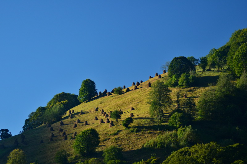 Die kleinen landwirtschaftlichen Flächen bilden ein ansprechendes Mosaik aus Weide, Obstgärten, Wald, Feldern. In größeren Höhenlagen findet man dann nur noch Wald, und erst weiter oben auf den Bergkuppen gibt es dann auch wieder Weidewirtschaft.