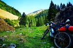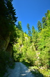 Nach 20 kurvigen Kilometern (jede See-Bucht muss ja ausgefahren werden) erreiche ich den Abzweig ins Buda-Tal am nördlichen Ende des Vidraru Sees. Es folgen nun weitere 20 Kilometer talaufwärts auf einer sehr hübschen und gut zu radelnden Forststraße bis auf etwa 1600m. Dort endet die Forststraße und geht in einen Wanderpfad über.