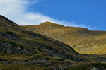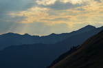 Ich übernachte in einem westlich offenen Kessel unterhalb des Moldoveanu mit Aussicht auf andere Berge des Fagaras, während der Gipfel des Moldoveanu noch lange die letzen Sonnenstrahlen einfängt.
