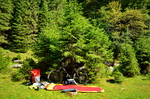 auch geschafft. Nach der Bergtour lasse ich den restlichen sonnigen Abend im Fichtenwald in der Nähe des Bergbaches ausklingen. |