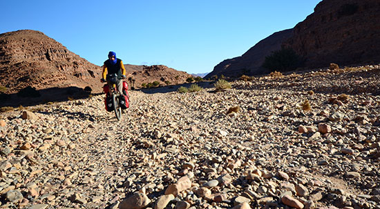 Schöne Fahrt (Rückenwind!) auf Schotter, Sand oder Lehm, immer im Qued