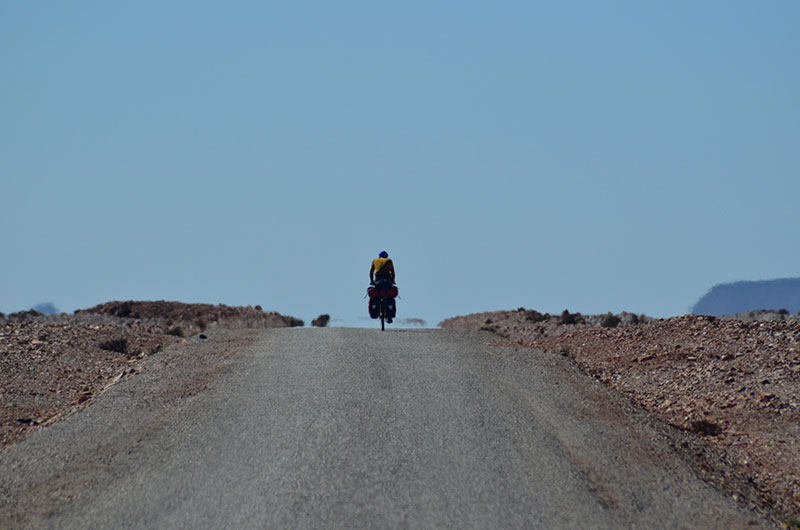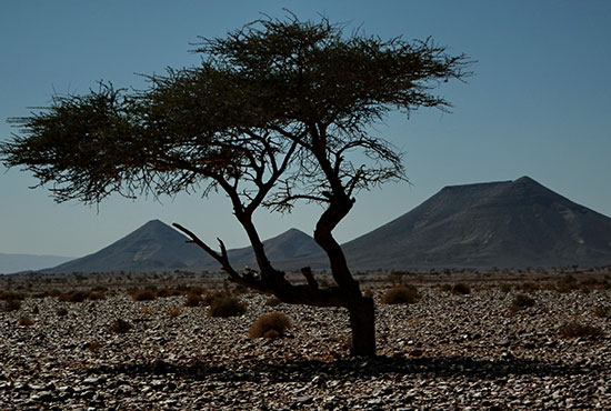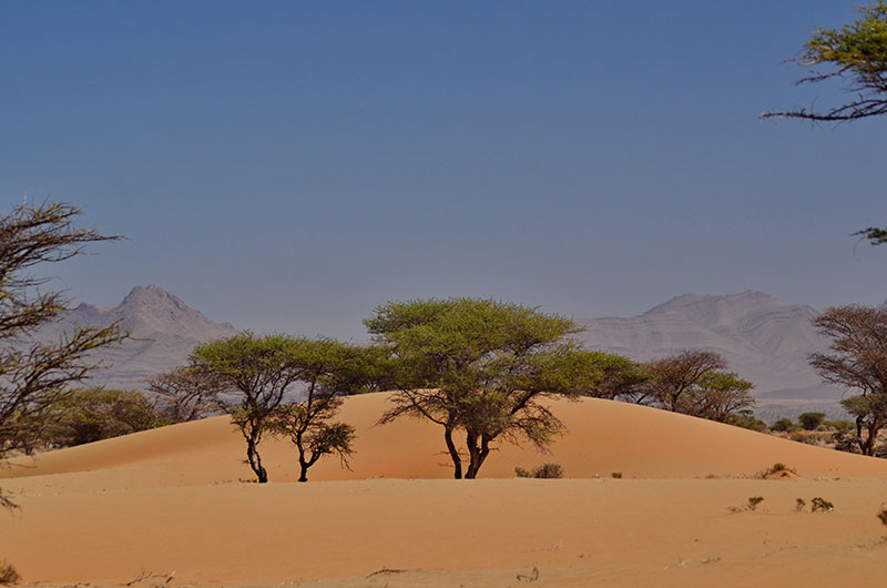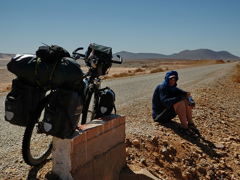 Auf der relativ neuen Asphaltstraße geht es weiter nach Assa. Auf diesen etwa 80 km durchfahren wir eine Dornbusch-Savanne und Landschaften mit halbwüstenartigem Charakter. Es ist fast flach, und wer hätte es geglaubt: wir haben einen kräftigen Rückenwind. Der Wind schiebt uns zwar ordentlich, dafür aber schwitzen wir in der für uns ungewohnten Hitze von 30°C umso mehr. Eine sehr entspannende Strecke, so richtig was zum Meditieren während der Fahrt. Aber wehe, wenn man hier Gegenwind hat...