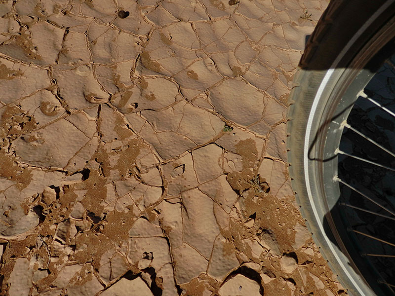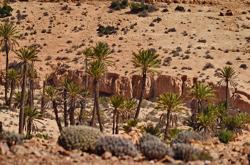 Vor den Betonplatten des Queds biegen wir nach rechts in Richtung der Berge. Die Asphaltstraße verlassen wir etwa 1 km hinter einem Brunnen, der unübersehbar am rechten Straßenrand ist. Dort versorgen wir uns auch mit reichlich Wasser. Wieder auf einer Piste (wenn auch eine geschobene und gewalzte) geht es nun nach Norden, über ein paar Hügel bis kurz vor die Ortschaft Tadalit.