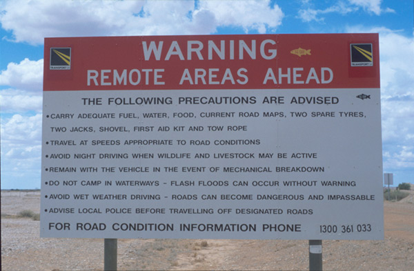 | Traffic: beware of Road Trains. These long big trucks drive very fast and will suck you in if you are too close. On gravel roads they will turn up small stones, which can hit you hard. Apart from that, in the Outback regions you may meet as little as one car per day or even less... | ![]() |