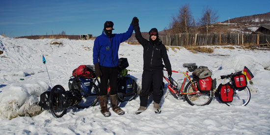 "How can you be active all day outside at these very low temperatures without freezing?" some of our friends were asking. "What about sweating during cycling without being cold afterwards?" Well, indeed it is a challenge to combine sportive activities at very low temperatures with adventure in nature and wilderness. Being exposed to the winter weather all day without a warm room in the evening, being completely self-contained without external support, that is the challenge we took up when we planned our Winter Mountainbike Expedition on Lake Baikal. Our plan was to start at the northern end and then cycle all the way down to the southern tip of the worlds deepest and oldest sweet water lake. It will be ice and snow, the beauty of the lake and the two of us on our bikes, nothing more.
