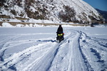 From Port Baikal on towards Kultuk we suddenly again were fighting with deep snow conditions and strong headwinds. It seemed, the lake would not allow us to finish. However, then at midday on March 2nd we reached Kultuk after 27 days of cycling and covering a distance of 1075 kilometers on the ice of Lake Baikal. Temperatures in the beginning were around minus 40 degrees at night and minus 20 during the day. As we headed towards the south end of Lake Baikal, temperatures increased to minus 5 degrees during day. It seemed that spring time was coming with the beginning of March. Soon we were sweating in our warm winter clothing, the winter boots seemed too warm and we took off a layer of gloves.