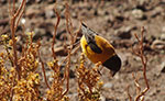 Zu essen gibt es dort aber nichts, dazu muss ich in den Ort zur Plaza. Also wieder etwas zurück bergab… Alles ist zu, Mittagspause… Nach einigem Suchen finde ich doch ein Restaurant, das offen hat und esse ein warmes Sandwich mit Hähnchenfleisch. An der Plaza im Schatten der Bäume mache ich Pause bis 17 Uhr, dann fahre ich trotz nachmittäglichem Wind aus dem Ort heraus, um einen Zeltplatz zu finden. Der Wind ist stark, ich bin etwas verzweifelt, wie ich hier in der sandigen Landschaft einen gescheiten Platz finden soll. In der Ferne sehe ich einen grünen Streifen. Bäume oder Büsche. Dort werde ich sicher Windschutz finden.