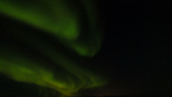 Im Laufe des Tages ändert sich die Landschaft, weniger Lava und weniger Steilküste, dafür schwarze Sanddünen, ein Haff mit Eisschollen und verschneiter schwarzer Strand. Einfach schön. Abends ist es wieder wolkenlos und es sind abermals schöne Nordlichter zu sehen.