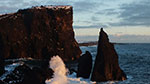 Am späteren Nachmittag erreiche ich den Leuchtturm an der Südwestspitze der Reykjanes und beschließe, dort für die Nacht zu bleiben. Ich beobachte die Möven, die die steilen Lavaklippen bewohnen, die Wellen, wie sie an die Felsen donnern und entdecke etwas weiter entfernt im Meer sogar fünf Wale. Kein schlechter Start also. Ein Platz für das Zelt ist zwischen den Lavabrocken schnell gefunden.