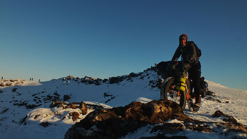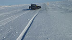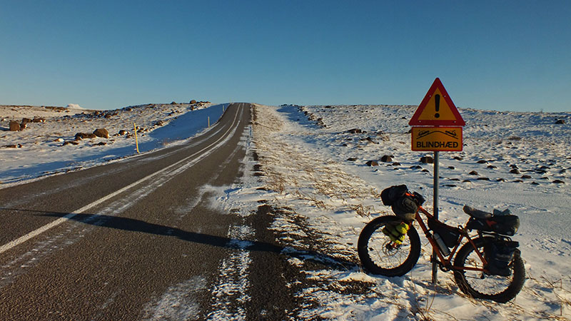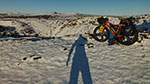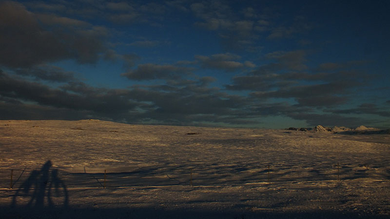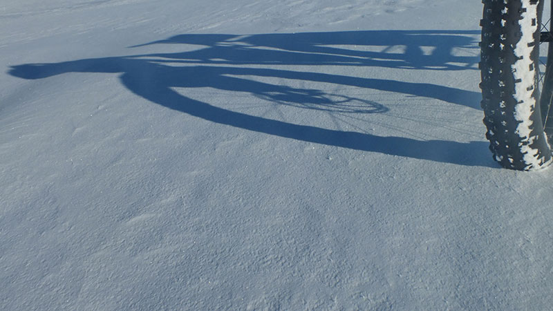 Ich begebe mich nun ins Landesinnere, mal sehen wie weit ich bei so viel Schnee kommen kann. Die Straße, der ich folge, ist noch geräumt, etwas später aber ist der Schnee lediglich von den Autos festgefahren. So habe ich es mir ja gewünscht! Ideale Winter-Fatbike-Bedingungen, und ich habe bei schönem Sonnenschein jede Menge Spaß. Insgesamt fahre ich an diesem Tag fast 80 km, es ist windstill und die Bedingungen sind sehr gut. Ich hoffe, es bleibt noch eine Weile so…