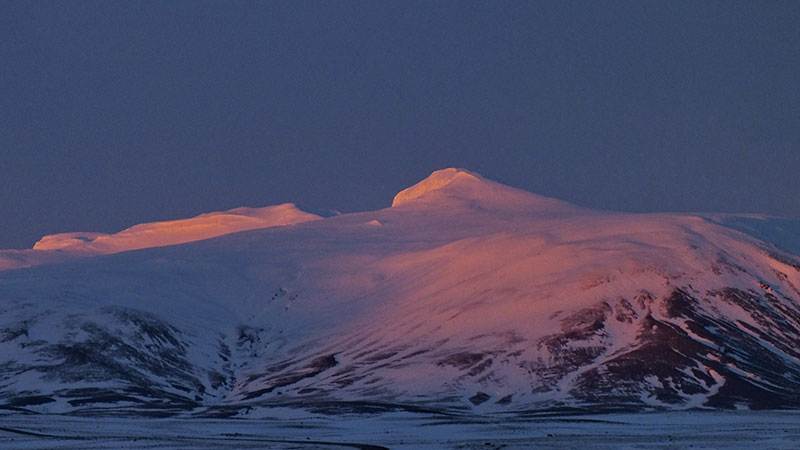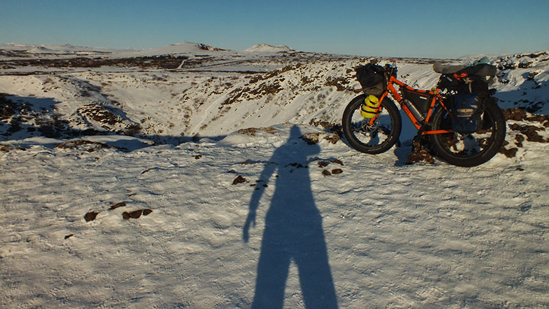 An einem der nächsten Abende finde ich einen schönen Zeltplatz am Krater Kerid. Nach Sonnenuntergang kommen auch keine anderen Besucher mehr vorbei, so dass ich dann das Zelt aufbaue. Es ist wolkenlos und es gibt wieder wunderschöne Nordlichter. Weil es windstill und wolkenlos ist hatte ich das Zelt ohne Überzelt aufgebaut. Mitten in der Nacht kommt starker Wind auf und es beginnt leicht zu schneien. Blöd nur, dass ich die Stiefel draußen stehen habe…
