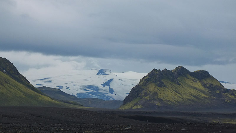 Steile Anstiege, tolle Höhenwege. Aussicht auf Höfsjökul und Vatnajökul.