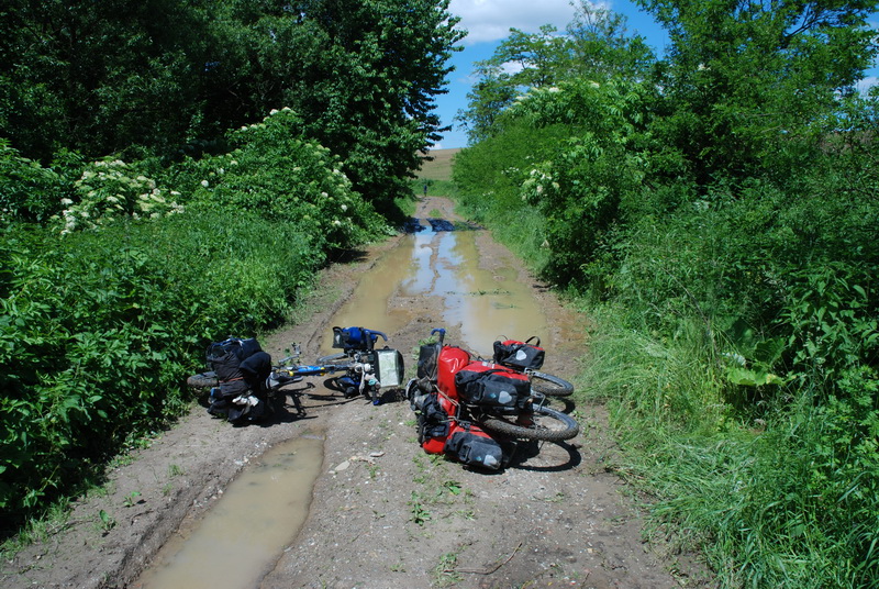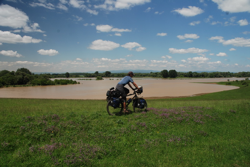 Der letzte Radeltag ist mit bestem Wetter. Wir radeln auf einem (überschwemmten) Feldweg in die Slowakei und sind wenige Stunden später wieder in Kosice. Auf slowakischer Seite sind viele Hochwasserschäden zu sehen. Mit dem letzten Zug verlassen wir Kosice, bevor die Eisenbahnstrecke auch wegen Hochwasser gesperrt wurde. |