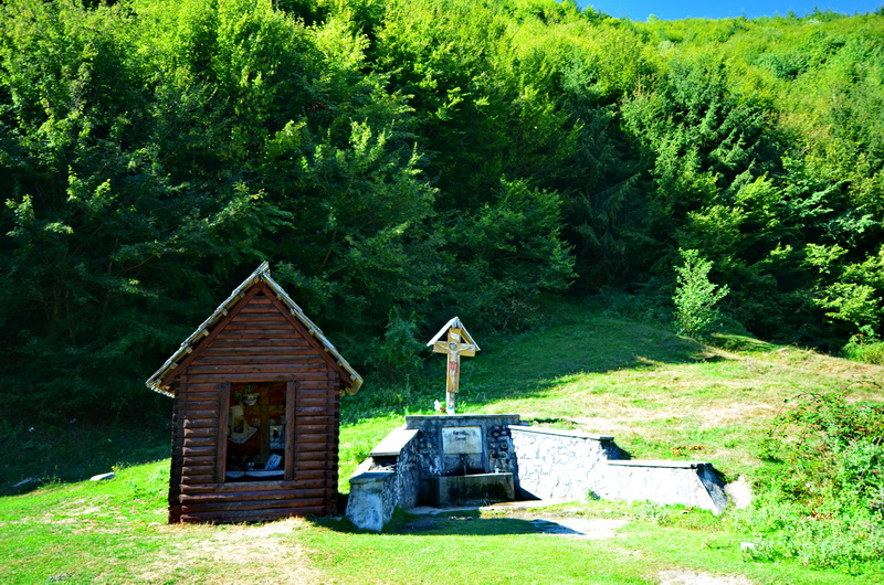 An einer kleinen Kapelle kurz nach einer Passhöhe zwischen den Dörfern Perisani und Salatrucu mache ich kurz Rast und genieße die Aussicht ins Tal. Die Malereien in der Kapelle sin auch sehr eindrucksvoll: In einer Art Bildergeschichte wird das fromme Leben erklärt, bzw. die 'Konsequenzen' des nicht-christlichen Lebens drastisch dargestellt. Irgend jemand hat den meisten Teufelchen auch schon die Gesichter weggekratzt.