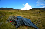 auch geschafft. Nach der Bergtour lasse ich den restlichen sonnigen Abend im Fichtenwald in der Nähe des Bergbaches ausklingen. |