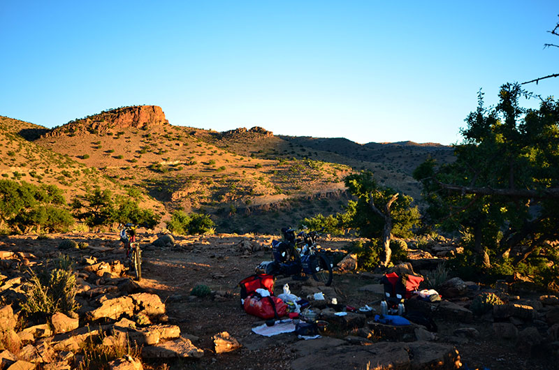 Bei wolkenlosem Himmel erleben wir hier die kälteste Nacht der Tour, Zelt und Taschen sind am nächsten Morgen mit Raureif bedeckt...