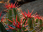 Auf der Strecke gibt es wenige Möglichkeiten, Wasser aufzufüllen. Die Sonne scheint intensiv und bei dem leichten Rückenwind kühlt uns der Fahrtwind nicht besonders. Dementsprechend sind wir froh, nach mehreren Stunden des sorgsamen Einteilens der Wasserreserven, endlich einen Brunnen in der Nähe einer Ortschaft zu finden. Wir füllen gleich die Wassersäcke auf und sind damit unabhängig. Nach einer weiteren Radelstunde finden wir einen schöneren Zeltplatz zwischen Felsen und Sukkulenten.