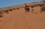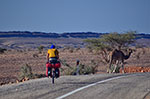 Auf der relativ neuen Asphaltstraße geht es weiter nach Assa. Auf diesen etwa 80 km durchfahren wir eine Dornbusch-Savanne und Landschaften mit halbwüstenartigem Charakter. Es ist fast flach, und wer hätte es geglaubt: wir haben einen kräftigen Rückenwind. Der Wind schiebt uns zwar ordentlich, dafür aber schwitzen wir in der für uns ungewohnten Hitze von 30°C umso mehr. Eine sehr entspannende Strecke, so richtig was zum Meditieren während der Fahrt. Aber wehe, wenn man hier Gegenwind hat...