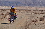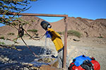 Vor den Betonplatten des Queds biegen wir nach rechts in Richtung der Berge. Die Asphaltstraße verlassen wir etwa 1 km hinter einem Brunnen, der unübersehbar am rechten Straßenrand ist. Dort versorgen wir uns auch mit reichlich Wasser. Wieder auf einer Piste (wenn auch eine geschobene und gewalzte) geht es nun nach Norden, über ein paar Hügel bis kurz vor die Ortschaft Tadalit.