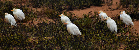 Leider kostet das Betreten eine nicht ganz kleine Summe (120 Dirhams / Pers.), dafür kommt ein Guide mit uns, der uns mit seinem Fernglas die vielen Vogelarten zeigt, die im Verlandungsbereich und auf den Schwemmfächern des dem Meer zustrebenden Flusses stehen oder schwimmen. Da sind europäische Kraniche, Purpur-, Grau-, Seiden- und Silberreiher, Löffler, ein Flamingo, sehr viele Kormorane, mehrere Waldtraps (Europäischer Wald-Ibis), diverse Enten- und Mövenarten.