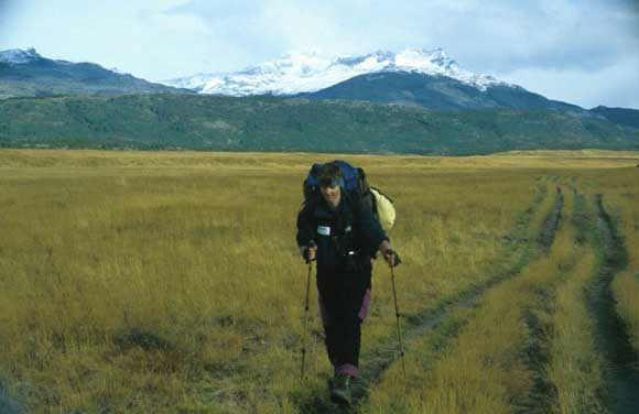 A rainbow in the steppe. Hiking in the Torres del Paine National Park. |