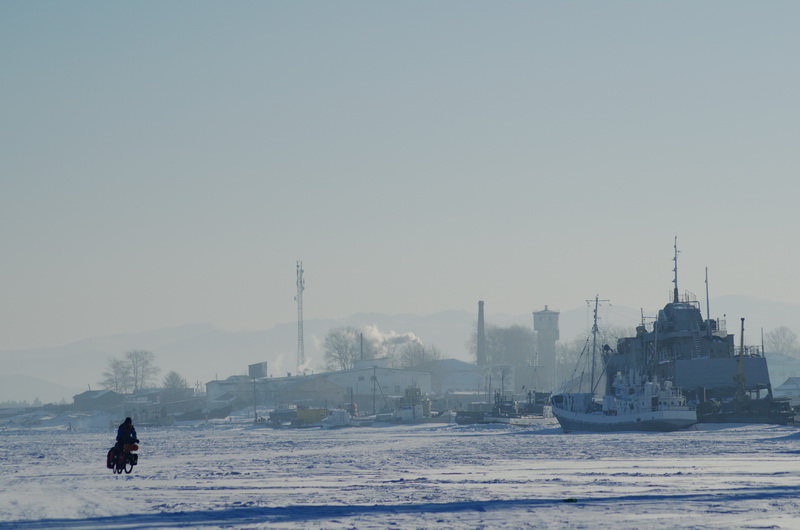 From Port Baikal on towards Kultuk we suddenly again were fighting with deep snow conditions and strong headwinds. It seemed, the lake would not allow us to finish. However, then at midday on March 2nd we reached Kultuk after 27 days of cycling and covering a distance of 1075 kilometers on the ice of Lake Baikal. Temperatures in the beginning were around minus 40 degrees at night and minus 20 during the day. As we headed towards the south end of Lake Baikal, temperatures increased to minus 5 degrees during day. It seemed that spring time was coming with the beginning of March. Soon we were sweating in our warm winter clothing, the winter boots seemed too warm and we took off a layer of gloves.