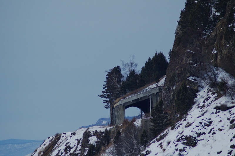 So, on 31st of January, in wonderful, cold winter weather we cycled to Nishneangarsk to start our trip at the northern point of the lake. However, already on the next day we experienced the diversity of Siberian Winter with dark snow clouds and snow flurry. It was hard to see the car tracks heading south to Baikalskoje in this conditions, and in general cycling on snow was very wearing. It became clear that weather, wind, snow and ice conditions were the dominating factors and we would have to adapt our schedule to these conditions.