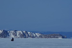 From Chushir we again cycled to the North Cape of Olchon Island and then followed the lonely East coast. This part of the trip was particularly impressive. We enjoyed the remote shore landscape and the almost blank ice conditions for cycling. On this section we did not meet any other humans, but saw many tracks of wolves. We then continued on along the West coast of Lake Baikal towards Listvianka. Again this section was very diverse and attractive with its steep cliffs and ice-covered rocks. From Bolshoje Goloustnoje on we sometimes met other people on the lake, such locals with their cars, and some other tourists who were hiking on the ice. In these cases, we were then seen as an attraction for them.