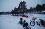 In general, our diet was very good and diverse. We started the day with a big portion of cereals cooked up with milk powder and dried fruit. In the morning we melted ice to fill our two large thermos bottles which would supply us with hot water and tea during the day. After every two hours cycling we had a small break in which we had some energy drinks, energy bars, a selection of nuts or some ham. Of course we had to thaw our food in our pockets in advance, as everything was frozen hard at temperatures way below that of a home freezer. The main task during the evening then was to again melt enough ice to cook a dinner meal of rice, pasta, mashed potatoes, buckwheat or couscous enriched with dehydrated vegetables and meat. A bar of chocolate serve as dessert, and tea or hot chocolate was for drinking.