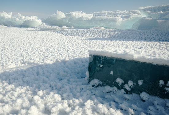 "Es wird unsere letzte Nacht auf dem schönen Baikalsee. Der erste große Nachteil unserer Annäherung an die Zivilisation ist die nun schlechtere Qualität des Eises. Es ist mit einer leicht braun-grauen Rußschicht überzuckert, von den vielen Kohleöfen der Siedlungen und der Stadt Sludjanka am Südufer des Sees. Das sollen wir trinken?" Die momentanen Bedrohungen des komplexen Ökosystems des Baikalsees kommen vor allem von den Abwässern des Papier- und Zellstoffwerks in Baikalsk am Südufer, von der Kahlschlagpolitik in der russischen Forstwirtschaft in den Wäldern der umgebenden Gebirge und dem oft unkontrollierte Bau von Wochenendhäusern (Datschen) in Ufernähe durch neureichen Russen, die sich mit Hilfe ihres Geldes über Schutzbestimmungen hinweg setzen.