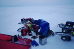 - Self-inflating mattresses: We had no particular problems with our self-inflating Thermarests. We even had constructed a system to be able to inflate the mattresses with our bike pumps. However, inflating these mattersses at temperatures way below freezing simply took too long and always resulted in cold fingers when handling the valves.