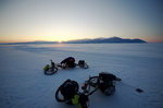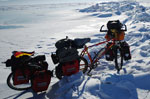 Basically we already had our winter gear available from various other cycling and mountaineering tours involving cold temperatures and/or high altitude (see also Greenland, Tibet, Projekt 7000). Some important considerations were: