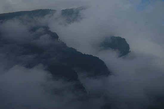 Schließlich ist es schon sehr dämmrig, als ich in einer Haarnadelkurve auf dem kleinen Grünstreifen das Zelt aufbaue. Der einzige flache Platz weit und breit. Leider mit ständigem Scheinwerferlicht der vorbeifahrenden Autos, die hoffentlich in der Nacht weniger werden. Ich koche mein Nudelgericht und verkrieche mich im Schlafsack.