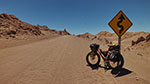 Ich entscheide mich, das Valle de la Luna zu erkunden, das interessante Wüsteneindrücke verspricht. Und ich beschließe, zur Eingewöhnung mit vollem Gepäck zu radeln. Ich kaufe noch Getränke: Wasser und diverse bunte Brausegetränke, insgesamt etwa drei Liter. So am frühen Nachmittag komme ich los. Bereits nach 5 Kilometern, am Kassenhäuschen für das Valle de la Luna, quält mich der Durst.