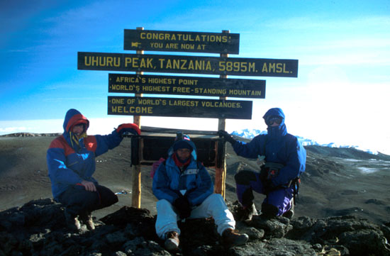 The descent via Mweka rout basically means running down the mountain on a direct line. The first 1000 m lead through a gravel field, basically sliding down on the gravel and small rocks. From the camp Barranco (about 4600m), the trail leads back to the Erica arborea zone, and to the Mweka camp at the beginning of the rain forest at 2800 m. (from the summit to there, we did a descend of 3000 m!). From the Meweka camp it is another 1300 m descent to the village of Mweka. Again the trail through the rain forest is very steep.